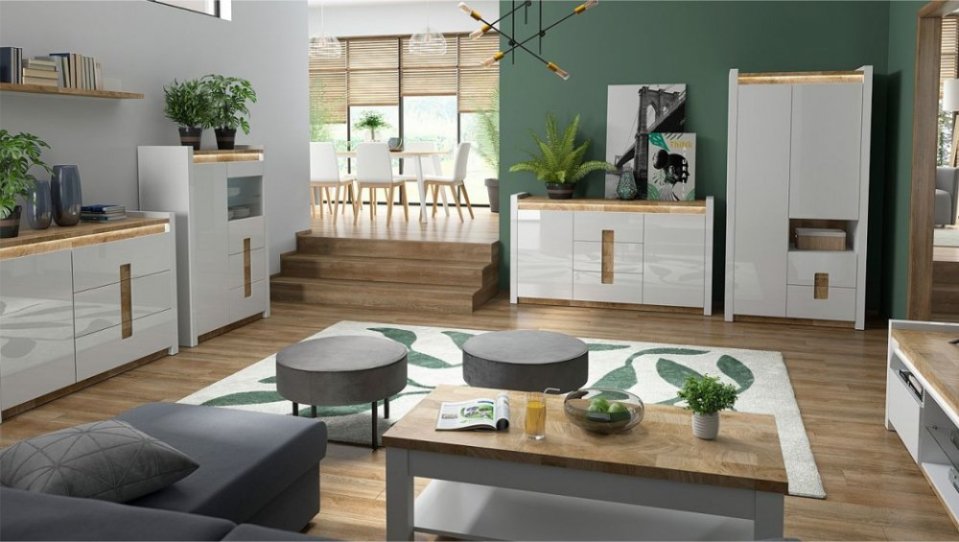 ALAMEDA vitrína, bílý lesk/dub westminster