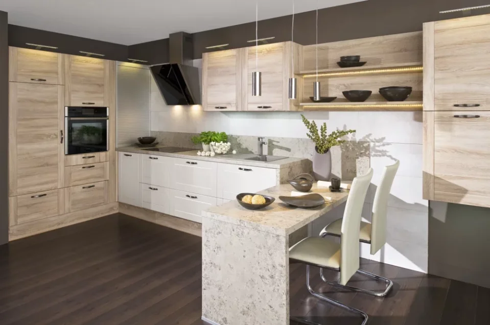 Pro mladé a úspěšné. U této kuchyně převládají vzájemné barevné kombinace dekorů, kterými se každá kuchyně stává novým originálem.